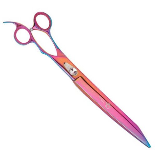 Studio : PetEdge Dealer Services Publisher : PetEdge Dealer Services Binding : Misc. Product Description Each shear features offset blades for power cutting and comfortable handles for all day use. Shears feature staggered blades for easy opening and power cutting, a dial tension adjuster, finger rests, and rubber thumb rings. Titanium coating will not rub off. Made of cobalt steel shears with titanium coating. Available in pink color. Measures 10-inch length;. 0