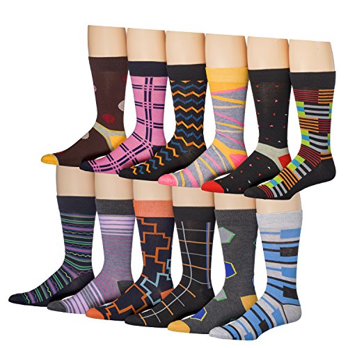 -. Binding : Apparel -. Brand : Pince Bernardo -. Color : Black -. Department : mens -. Feature : AWESOME BLEND COLORFUL SOCKS - Variety styles of men color socks makes it really fun to start your day, perfect way to jazz-up and get complimented! / GREAT GIFT IDEA - Are you looking to treat yourself spouse or friend this is a great useful gift that will be enjoyed and remembered / BREATHING MATERIAL - No more sweating hot feet while you dress up with stylish dress socks for men. This will feel awesome soft and comfortable. / COMFORT FIT DRESS SOCKS - We took the extra effort to make sure this will fit comfortable shoe size 6-12. / UNIQUE DESIGN CLASSY STYLISH LOOK - No more mundane dress socks, get a solid fresh look when going out dressing up or just when lounging around. -. ProductGroup : Apparel -. ProductTypeName : SOCKSHOSIERY -. Title : Men 12 Pack Colored Patterned Mens Dress Socks