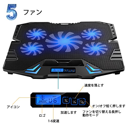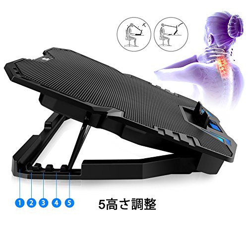 - このノートパソコン冷却パッドの特有の設計としては理想的な視野角にノートPCを配置するには5つの高さが設定され、一日中最もリラックスする傾斜角で利用することも可能です。