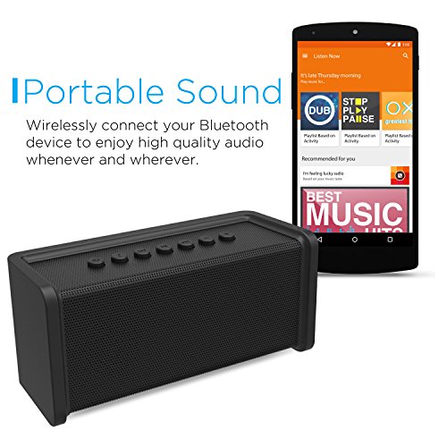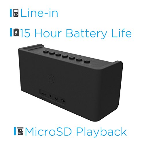 -. Binding : Electronics -. Brand : Ematic -. Feature : Wireless Audio: Play and control audio playback from over 30 feet away. / Speakerphone: The built in microphone lets you answer calls and chat loud and clear. / 15 Hour Battery: The built-in rechargeable battery provides hours of music wherever you go. / Micro SD Playback: Enjoy music from a MicroSD card. / Line-In: Use a 3.5mm audio cable to connect devices without Bluetooth. -. Label : EMAF7 -. Manufacturer : EMAF7 -. PackageQuantity : 1 -. ProductGroup : Network Media Player -. ProductTypeName : PORTABLE_AUDIO -. Publisher : EMAF7 -. Studio : EMAF7 -. Title : Ematic Portable Bluetooth Speaker