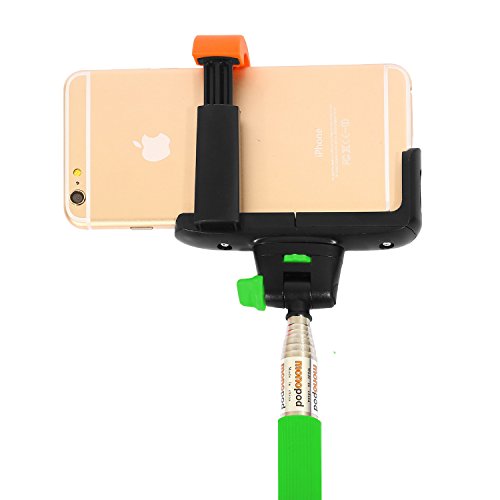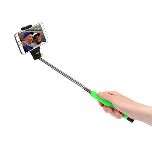 Wizgear 3-In-1 Self-portrait Monopod Extendable Wireless Bluetooth Selfie Stick with built-in Bluetooth Remote Shutter With Adjustable Phone Holders included - With Free bonus phone adapter (Green)