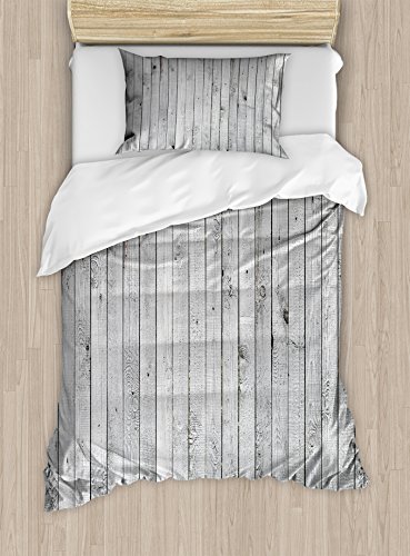 (Ambesonne)/Bedding Bath/Bedding/DIRECT FROM USA/Grey and White Twin Size Duvet Cover Set by Ambesonne, Vertical Lined Wooden Board Background B...