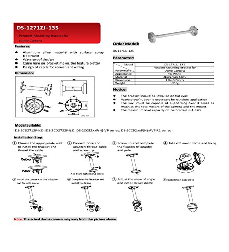 -. Title : Hikvision DS-1271ZJ-135 Ceiling Pendant Mount Bracket for Hikvision Dome Camera DS-2CD2712F-I