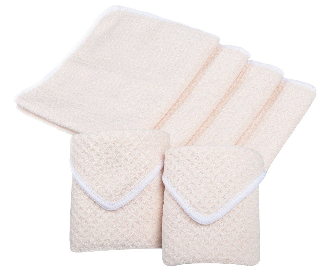 SINLAND microfiber waffle kitchen utensils wipe waffle towel glass wiping cloth hand towel six (33cmx33cm cream)