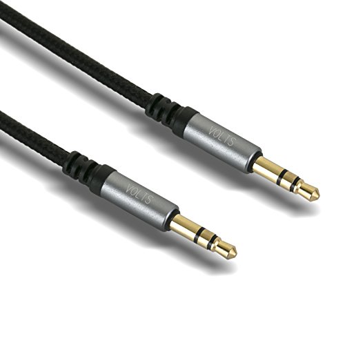 Volts AUX 6.6ft Nylon Braided Male to Male Cable Universal Audio Stereo Cord for Smartphones, Tablets and MP3 Player (2 meter - Black)