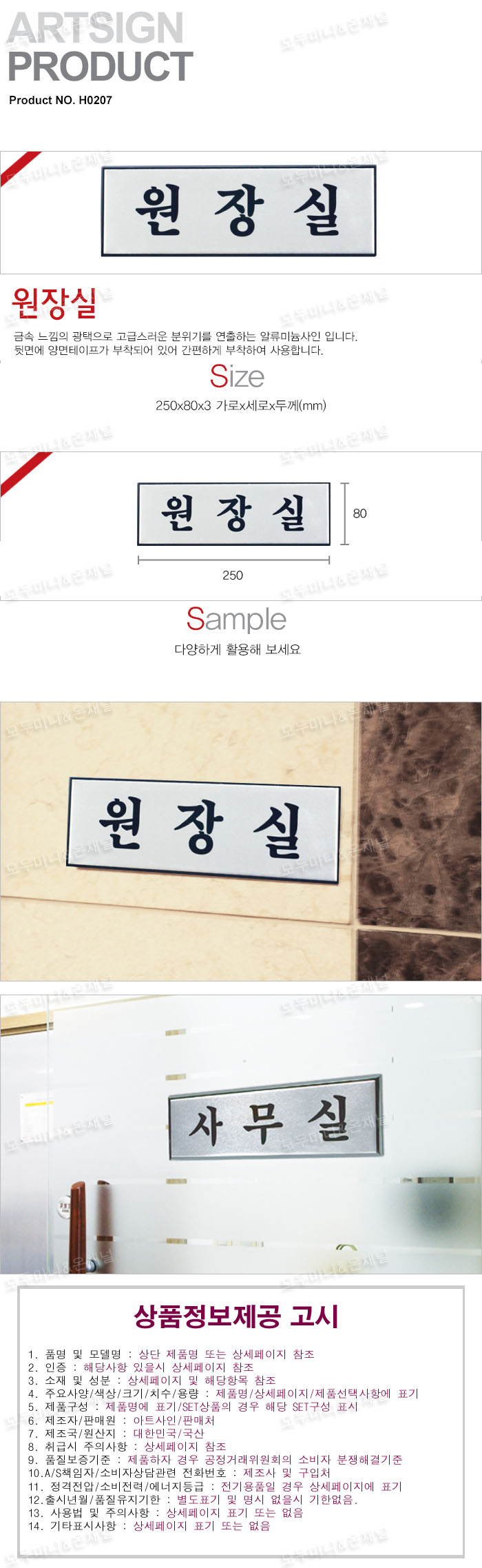 - 품명 및 모델명원장실 알루미늄표지판(250x80mm)