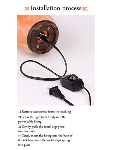 - SWEAT NOTE: Salt lamp is made from Natural Himalayan salt rock hand mined in the Himalayan mountains.Salt itself has the property of moisture adsorption,The more the moisture, the greater the salt lamp "sweat".It will "sweat" when the humid environment,You can turn on the light (30 minutes to 1hour), water droplets on the surface of the lamp soon dried up. Just wipe the outside surface with a damp sponge and dry with a paper towel. If long time don't use, can use the plastic bags wrapped up.