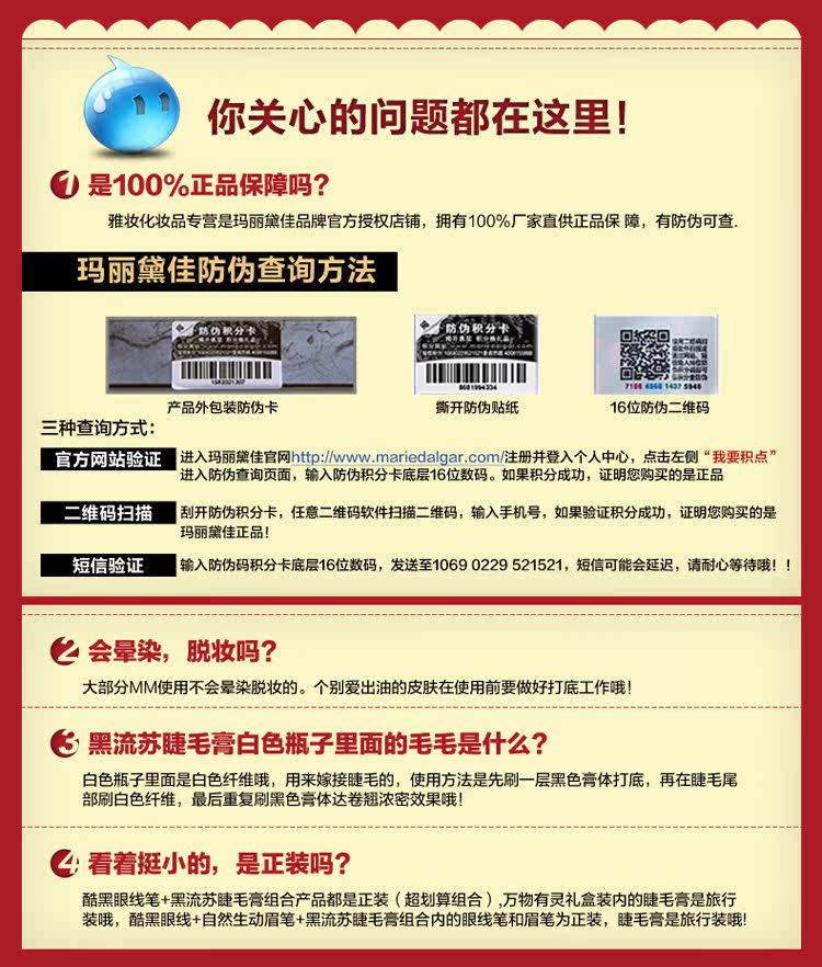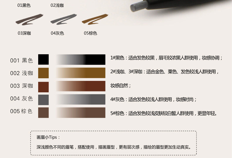 眼线笔+睫毛膏+眉笔=酷黑速干眼线笔+黑流苏蜜语睫毛膏+自然生动眉笔(1-5号色请联系客服留下色号)