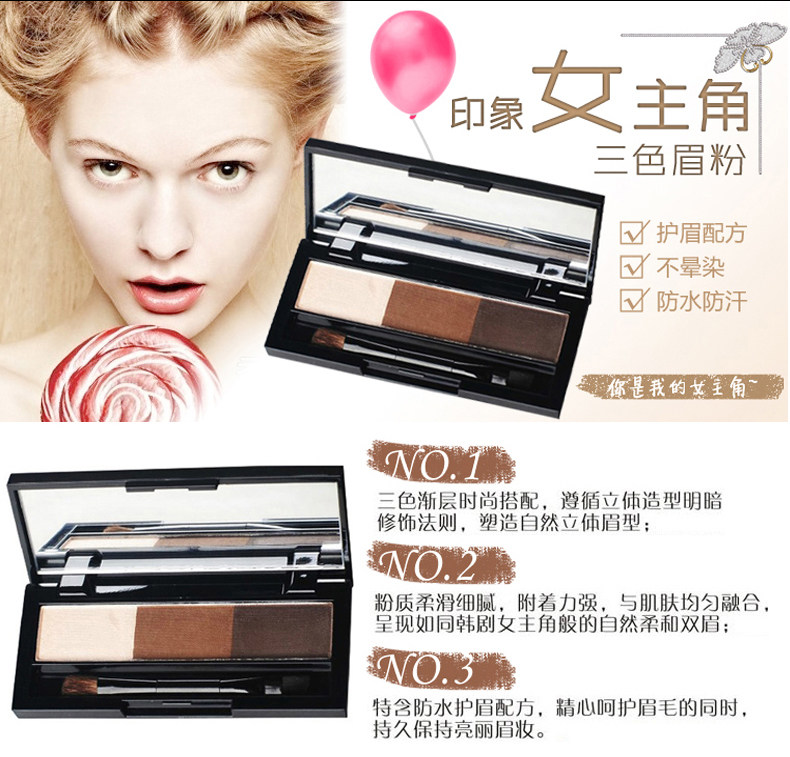 眉粉:印象女主角三色眉粉(1#浅棕,2#深棕)
