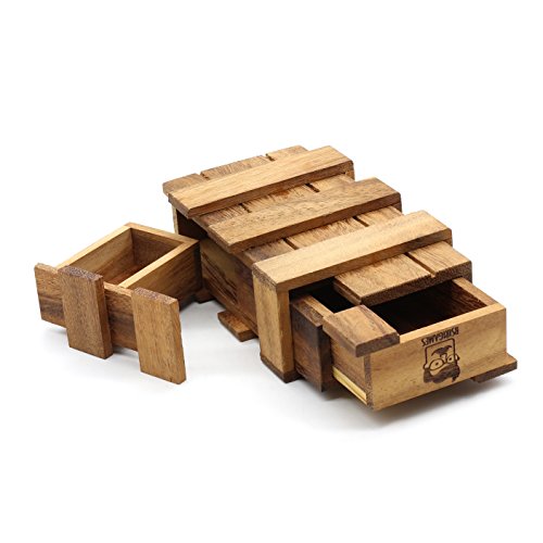-. Title : BSIRI The Magic Box Puzzle Brain Teaser Box Monkey Pod Wooden Secret Trick Intelligence Compartment Magic Money Gift Box Wooden Trick Puzzle Games Magic Wooden Box with Extra Secure Secret Drawer