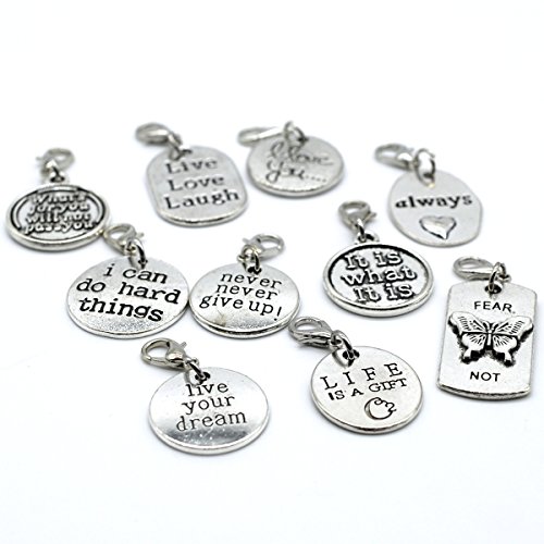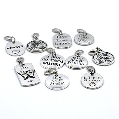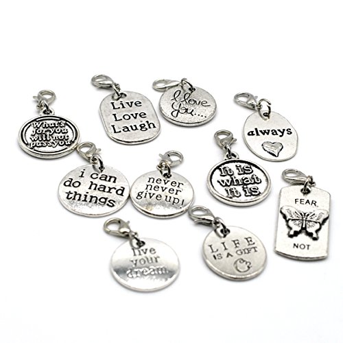 10PCS 10 Words Antique Silver Clip-on Charms Collection, Vintage Jewelry Supply Lot, Wholesale C11