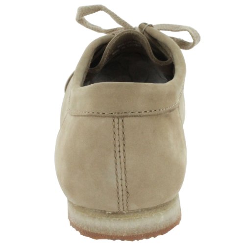 - Feature : With its moc-toe stitching and two-eyelet laces, Clarks' traditional Wallabee style is revised with a smaller heel and rugged tread.