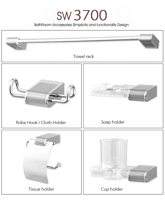 Quantity : 1 set (Towel rock, Robe Hook, Soap Dish, Paper Holder, Tumbler Holder)