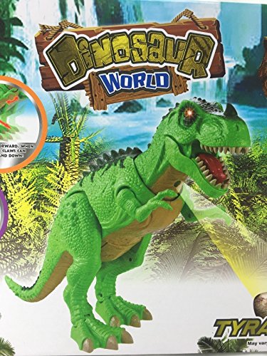 Product Description Dinosaur World Tyrannosaurus Rex Battery Operated Walking Toy Dinosaur Figure w/ Light Projection, Realistic Movement, Lights and Sounds (Colors May Vary) 0