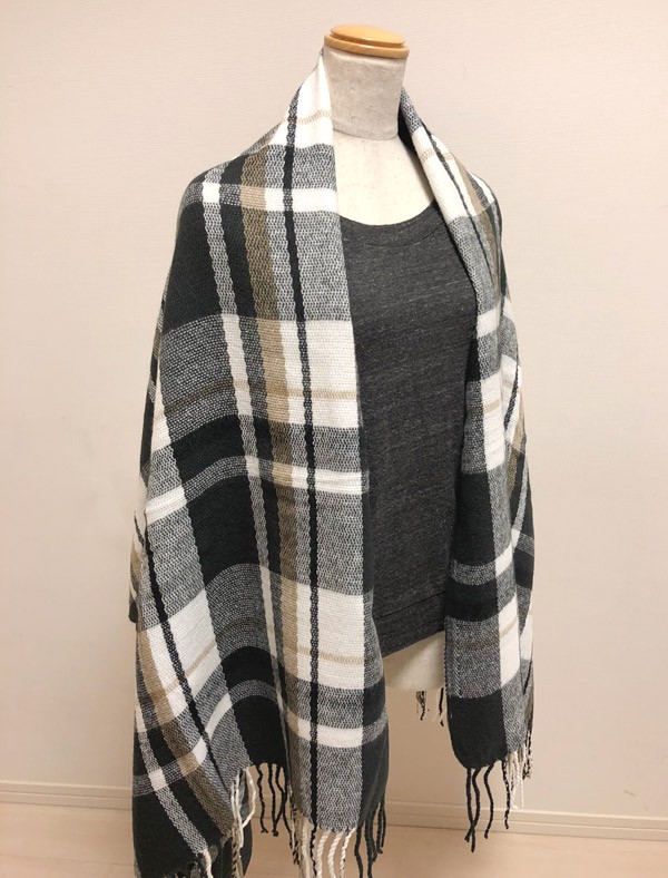 起毛感のあるふっくらした生地の大判チェックストール たっぷりサイズだから、とにかくあったかい♪寒さ対策はもちろん、手軽に首周りにボリューム感を出せて小顔効果も◎。寒さが増すこの季節、ぜったい持っておきたい1枚☆ 巻いて使うほか、羽織りやひざ掛けとしても使える万能アイテム。 おうちやオフィスなどインドアでも気軽に使えてうれしい♪ 大判なので、メンズの使用もOKです☆ トレンドのチェック柄をやさしいニュアンスカラーで仕上げました。 ブラック、ネイビー、ライトグレー、アッシュピンク、ベイビーブルー、サーモンピンクの6色展開です。 |
