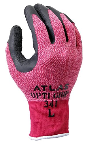 Atlas 341 Opti Grip Latex Dipped Work Gloves - Red - Medium