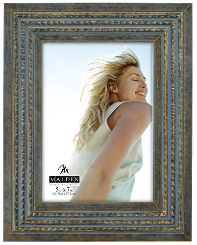 Malden International Designs Fashion Woods Paloma Blue And Gold Raised Bead Picture Frame, 5x7, Blue