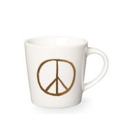A simple peace sign drawn in gold makes a beautiful statement on this collectible demi mug.