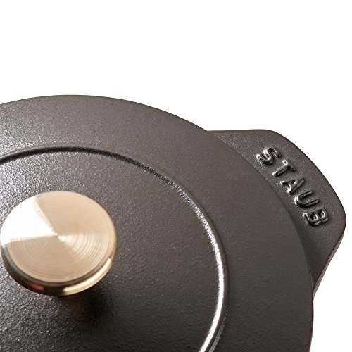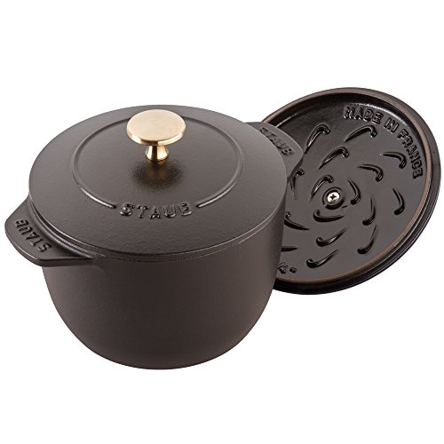 Staub's 1.5 quart Cast Iron Petite French Oven boasts the benefits of a full-size cocotte in a compact size. Get fluffy rice, tender grains and creamy oatmeal thanks to Staub's signature new lid. Staub's latest innovation, the Chistera drop-structure lid, has solved the challenge of curved lids—they limit moisture to sides—by ensuring continuous condensation throughout. Unlike countertop rice cookers, Staub's Petite French Oven can be transported from the stovetop to the table. No need for serving bowls; these charming cocottes take care of both cooking and plating. Rice has never been so easy to make.Feature