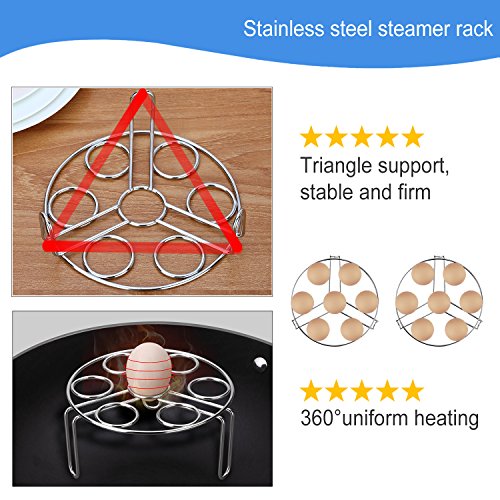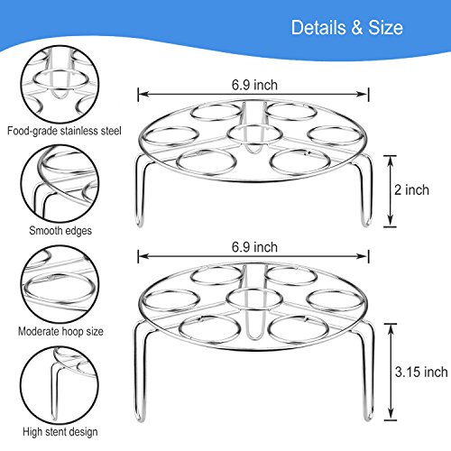 ✔ PERFECT STEAM RACK FOR PRESSURE COOKER ACCESSORIES - It can cooks 1 to 7 eggs the same time in a few minutes.if you stack the two rack together(the long leg is upper.) You can cook 14 eggs(max ) at once.