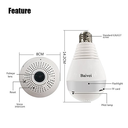 -. Title : Baivei 960P Wireless WiFi IP Panoramic Bulb Camera 360 Degrees Fisheye Lens For Home Security System Pet Monitor&Baby Camera,Two Way Audio,Motion Detection(White)