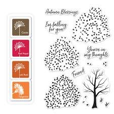 Color Layering Autumn Trees Bundle clear unmounted rubber stamp & ink pad set by Hero Arts.