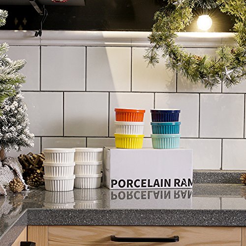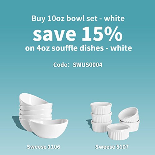So elegant! Serving well as a multi-purpose kitchen helper! ▶ The 4 ounce ramekin set, diameter 3.7 inch, height 1.7 inch. Just the right size for creme brulee, individual cobblers, cupcakes, or any number of other recipes. And SIX set is a great when you want to use them for ingredient prep. ▶ Striated edges allow you to put these creme brulee dishes into the oven with more comfortable grip, worry free about slipping. And the striated edge makes these souffle dishes look more fashionable and help you to better match your dessert. ▶ Dishwasher safe and easy to clean by hand if needed. They are safe for freezer, microwave, and oven as well. The versatility of Sweese porcelain souffle set doesn't stop there Are you a DIY lover? Throw in a few pebbles for drainage, add a little potting soil and some clippings, and you can use them for mini-planters. Sweese souffle dishes are small enough to fit on a windowsill, yet large enough to provide ample growing space for a steady supply of kitchen herbs. How interesting and functional!Go ahead, decorate your life! Best Gift Option They are packaged in a well wrapped box, a perfect gift for your friends and family on Housewarming, Wedding party, Mothers' Day, Fathers' Day, Christmas and New Year's Day. 0 |
