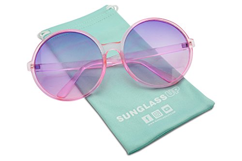 Super Huge Round Circluar Color Translucent Two Tone Lens Circle Retro Sun Glasses