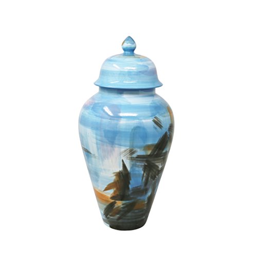 Sagebrook Home Decorative Covered Ceramic Jar, 8.5" x 8.5" x 17.75", Blue Mix