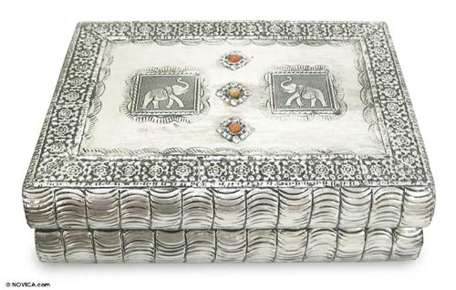 NOVICA Decorative Repousse Brass Jewelry Box Metallic 'Royalty'