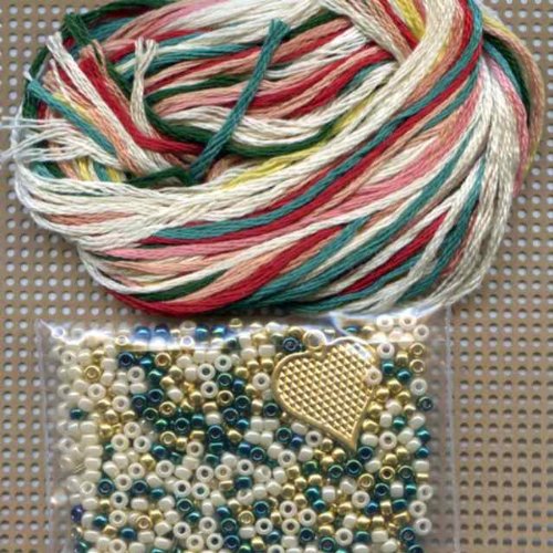 Product DescriptionKit includes glass beads, petite charm, perforated paper, floss, needles and chart with instructions. Finished size: 3" x 3.5".0