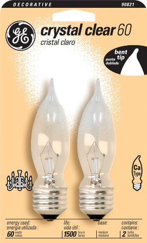 GE 48401-12 60-Watt Crystal Clear Bent Tip CA9, 12-Pack