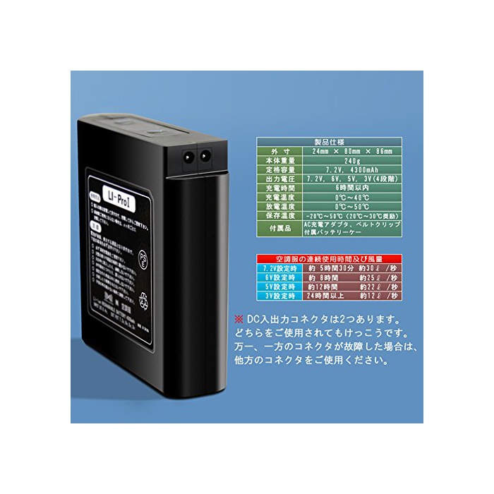 원본상품명: 空調服500kcalシリズ用リチウムイオンバッテリセット LI-Pro I