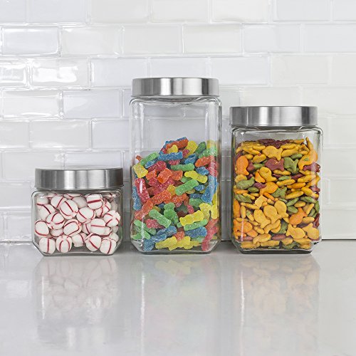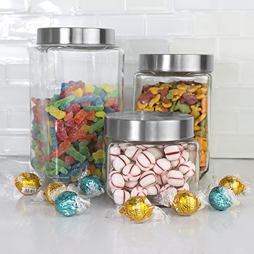 Home Basics 4 Piece Square Glass Canisters with Stainless Steel Airtight Screw On Lid