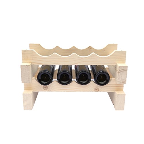 MingHou 2 Tier 8 Bottle Capacity Tier Pine Display Shelves Wine Bottle Rack Holder Storage Stackable