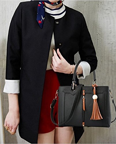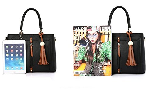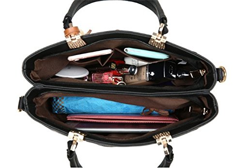 * Material: High quality PU leather. Not easy to be weared, polluted and high degree of waterproof * Size: 11.42"L*8.46"H*4.53"W. There is big enough capagity for you to put your phone, ipad, makeups, water glasses, umbrella and other necessities in your daily life or a travel * Color: multiple colors for you to choose, meeting almost all your demands * Occasions: perfect working bag for official ladies, fashion shopping handbag for fashion ladies, perfect travel bag for women