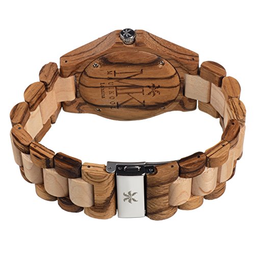 MADE FROM 100% NATURAL MAPLE AND ZEBRAWOOD - Every piece of wood is born with singular texture that makes every wooden watch its own natural, unique sculpture. So you will never find a 100% identical wood watch as yours.