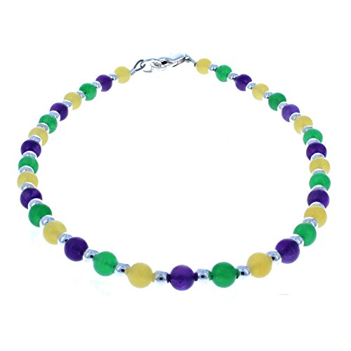 -. Title : Womens Agate, Amethyst & Sterling Silver Ladies Beaded Gemstone Anklet