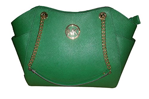 -. Binding : Apparel -. Brand : -. Color : Gooseberry Green -. Department : womens -. EAN : 0889154488762 -. Feature : Gooseberry green cross-hatch saffiano finished leather with polished golden tone hardware / Lined interior features (4) open slip pockets and a zippered pocket / Three quarter zippered top closure with side gusset pockets / Dual leather and chain handles with a drop of about 9 inches / Measures approximately 12" (L, bottom) x 9" (H) x 4" (W) -. Model : 35T5GTVT3L -. ProductGroup : Apparel -. ProductTypeName : BAG -. Size : Large -. Title : Jet Set Travel Large Chain Shoulder Tote - Gooseberry Green Leather -. UPC : 889154488762