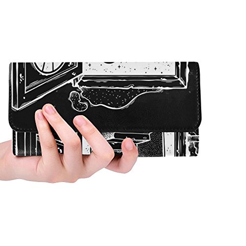 Carry the necessities around in style with this unique trifold wallet. The interior features 12 card slots, 1 zipper pocket, 1 ID window and 2 full length pocket for cash, multipurpose large capacity. The wallet is designed with a hidden magnetic closure. Great as a everyday wallet or as a clutch when you go to party, get the most out of your wallet! Measures 7.48"(L) x 1.22"(W) x 4.02"(H)