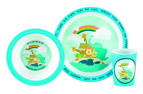 -. Title : Two By Two Noah's Ark 9.5 x 9 Melamine Plate, Bowl, And Cup, Gift Set of 3