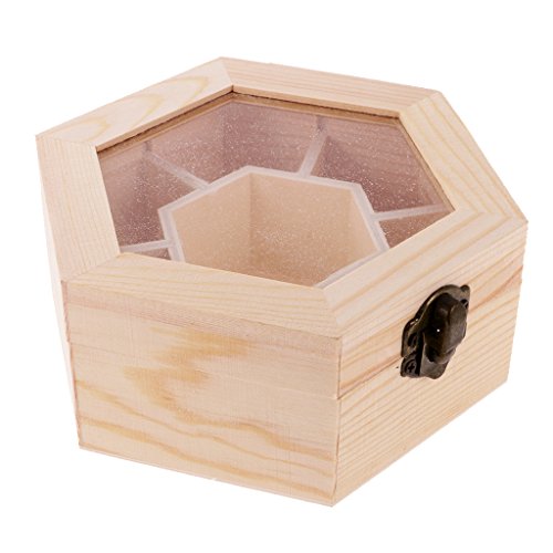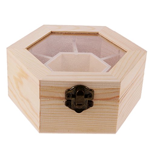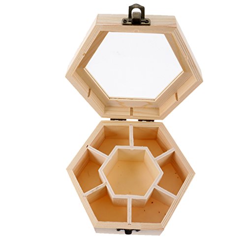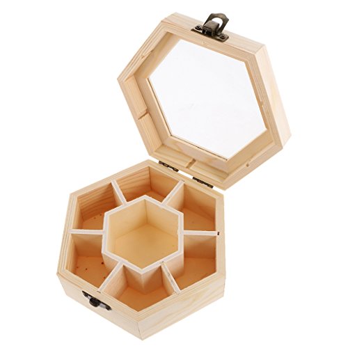 -. Feature : 7 Grids Hexagon Plain unfinished wooden jewellery case / storage box / Suitable for necklace, bracelet, bangle, earrings, charms, watch, tiny tools storage / Perfect for DIY crafts, decoupage, painting, staining, varnishing and decorating, pyrography / Memorial Keepsake Gift for kids and families / Total Size ( L x W x H ): Approx. 14.7 x 13 x 6 cm / 5.8 x 5.1 x 2.4 inch