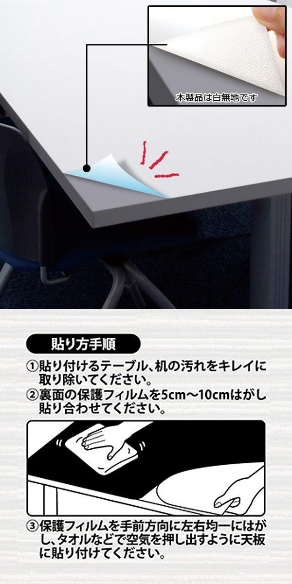 | テーブルをキズや汚れから守ります。カッターやはさみで簡単にカットできますので、テーブルのサイズや形に合わせて貼ることができます。汚れも、サッとひと拭きするだけでキレイになります。 |