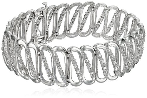 -. Feature : Bracelet featuring polished sterling silver punctuated by diagonal lines of shared-prong diamond rounds / Box clasp with tongue / The total diamond carat weight listed is approximate. Variances may be up to .05 carats. / All our diamond suppliers confirm that they comply with the Kimberley Process to ensure that their diamonds are conflict free. / Imported / Carat weight listed is the total for all stones.