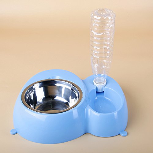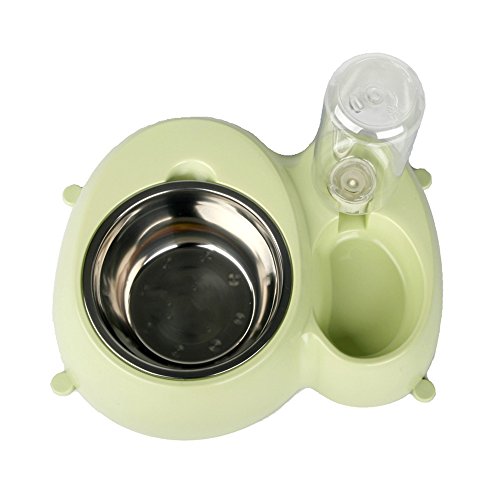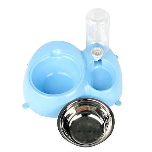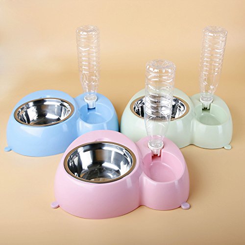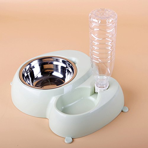 -. Feature : Made of Safety and Environmental Protection Resin Materials-Good quality and durable; The bottom with four anti-skid feet, to ensure the bowls does not move when the pets eating / Stepped Design-Effectively prevent your pets wet the hair when they are drink watter. This height gap can prevent the water splashing to the side of the food basin, keep the food dry and safe / Automatic Water Dispenser-Water in the bowl can be kept in a fixed position, keeps fresh water flowing / Double Dog Bowls Set- Ensures eating & drinking together, smart and useful, the stainless steel bowls is removable, easy to use, wash and clean / Suit for small to medium sized dogs, cats, kittens and other small pets, making feeding easier, more convenient and clean, fun & safe for your lovely pets