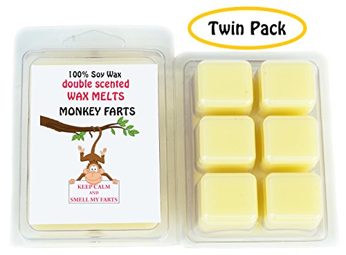 Monkey Farts DOUBLE SCENTED SOY WAX MELTS - WAX TARTS (Twin Pack-6.5oz). The Scent of Fresh Bananas Blended with Sweet Grapefruit, Kiwi, Raspberries, Coconut and Strawberries!