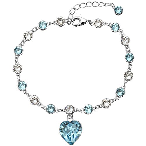 -. Title : EleQueen 925 Sterling Silver Love Heart Tennis Bracelet Aquamarine Color Adorned with Swarovski Crystals