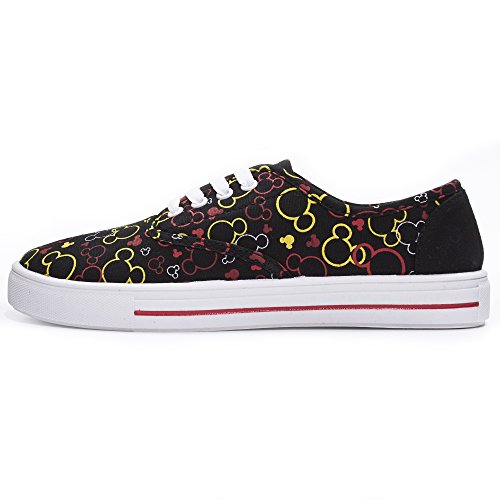 Get into the Mickey and Minnie craze as you wear these trendy Sneakers! Featuring a classic Mickey and Minnie head outline, these low top cut sneakers with lace let you show off your love for your favorite Disney character in a fashion-forward style. Each pair is made of durable and long-wearing canvas construction so you can enjoy these for many occasions to come. Whether you are dressing up for a party, a Saturday lunch out, or a shopping day, these shoes are ready for anything. These compliment a skirt, dress, shorts, or pants. Easy to slip on and easy to wipe for quick cleaning, so it's ideal for girls who are always on the go!
