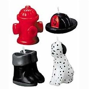 - The 4 piece set includes these candles - a fire hydrant, firefighter hat, firefighter boots, and a dalmation - a firehouse dog