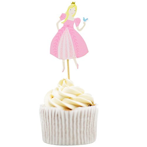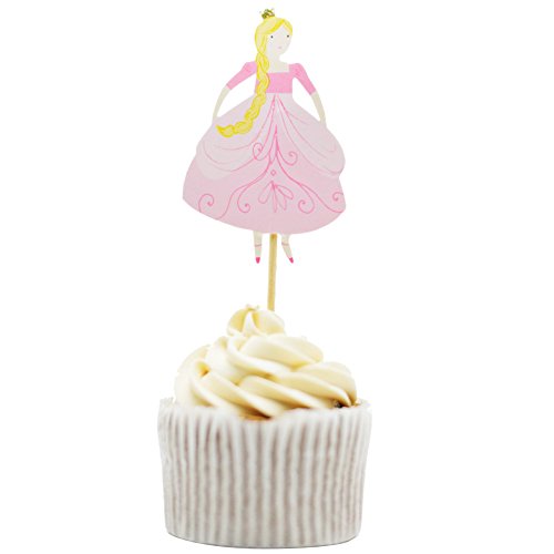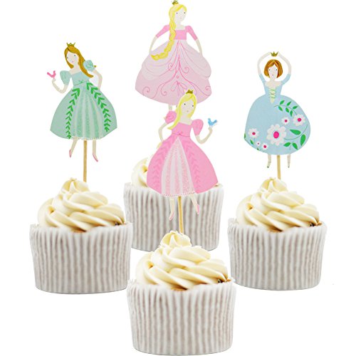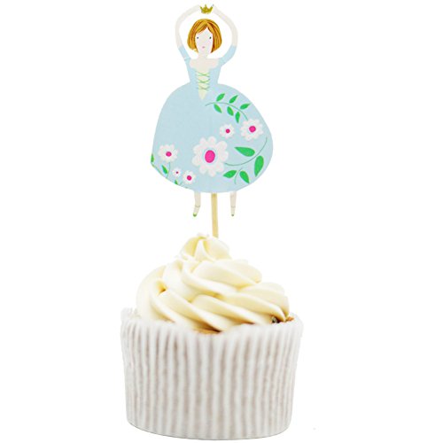 Betop House 24pcs Princesses Ball Gown Dresses 1st Birthday Baby Shower Party Decorative Cupcake Topper